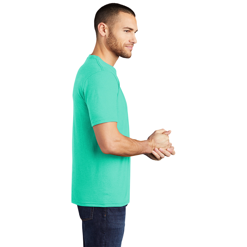 - Luxurious Fabric: The Custom District DM130 Perfect Tri Tee uses a blend of Poly/Cotton, offering a smooth, comfortable feel that’s ideal for all-day wear.